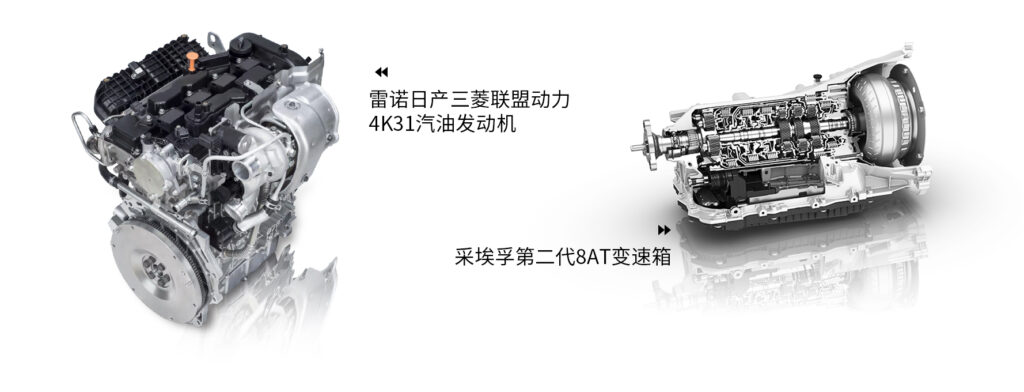 Mitsubishi 4K31 2.0T Gasoline (168KW; 360Nm); ZF 8AT (common / sport / sonw field / sand field /mud field / ECO / AMT)
